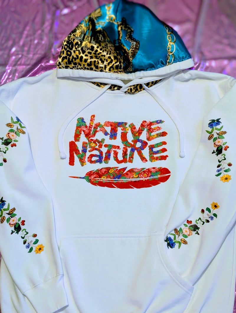 mulberry silky silk floral turquoise leopard print hoodie